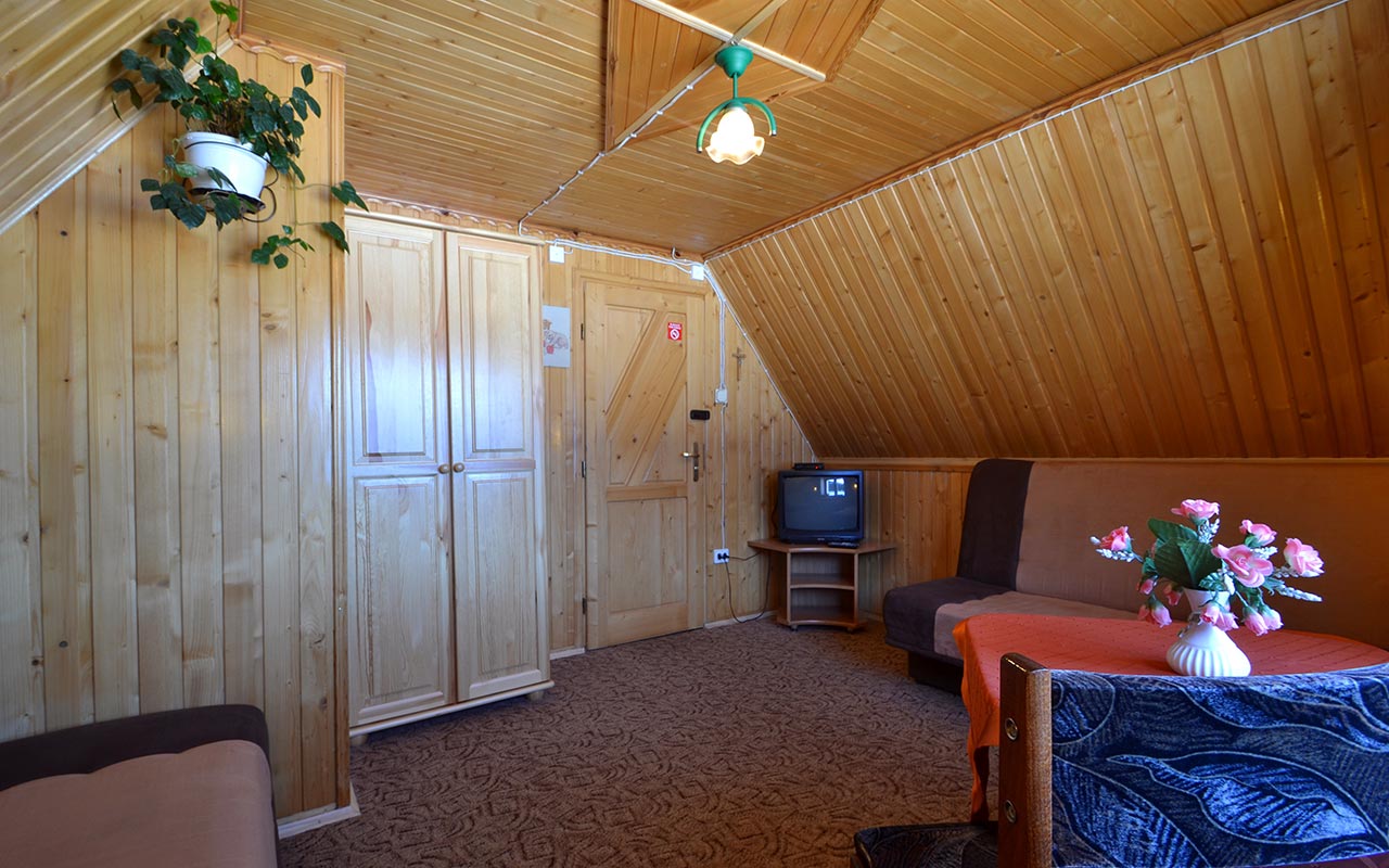 Intimní místnost obložená dřevem v regionálním stylu, určená pro 3 + 1 osoby,