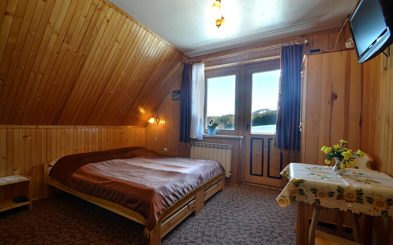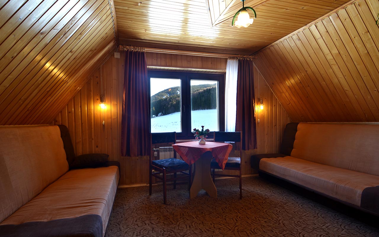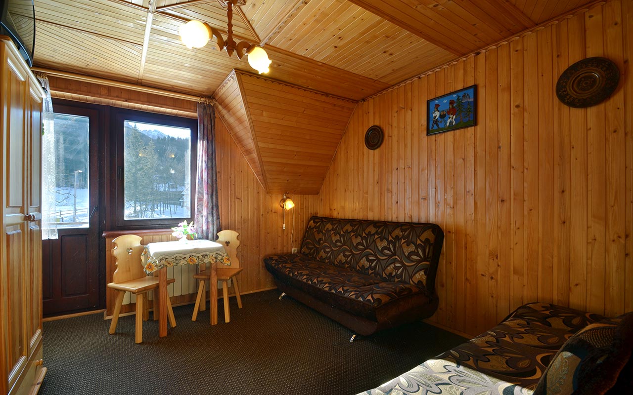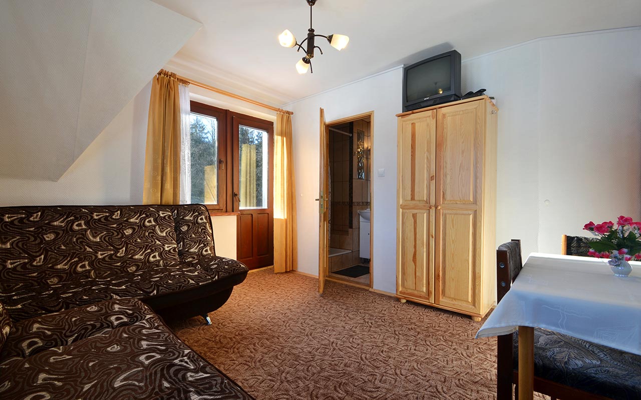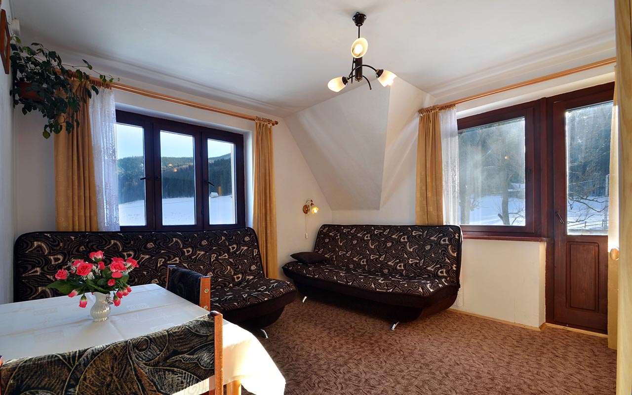 ubytování pro 2 + 2 osoby, s vlastním sociálním zařízením a balkonem s nádherným výhledem na hory, které vám jistě zpříjemní pobyt. V pokoji naleznete dvě pohodlné, rozkládací dvoulůžková pohovka, komplet